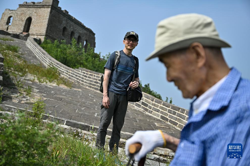 78歲的退休美術編輯嚴欣強和45歲的對外漢語教師嚴共明是一對“長城父子”。