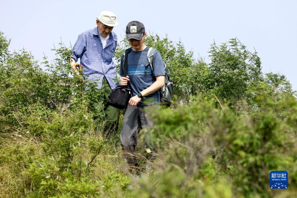 嚴欣強(後)和嚴共明在考察北京延慶的長城花家窯子段(9月5日攝)。