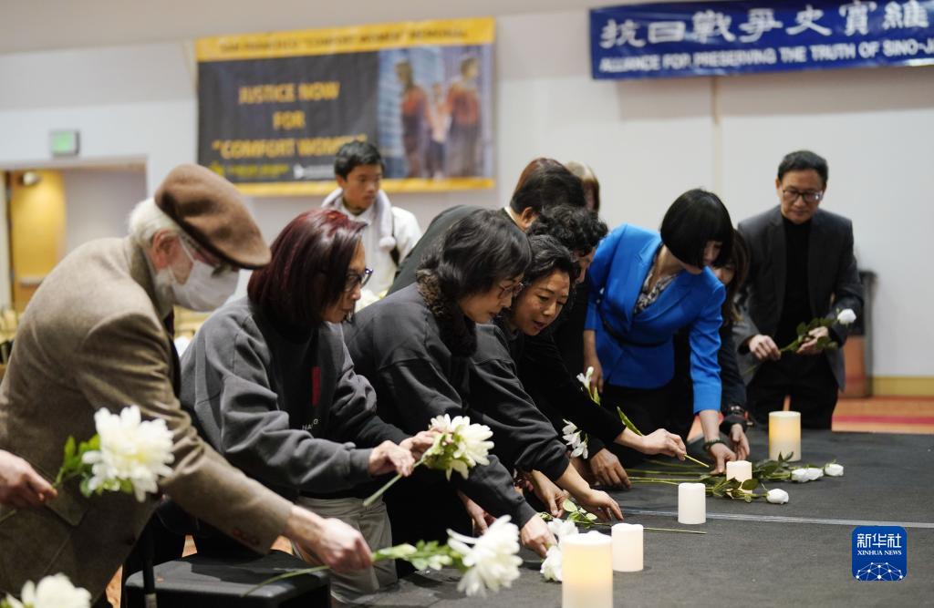 12月10日,人們在美國舊金山舉行的“南京祭”活動上獻花。