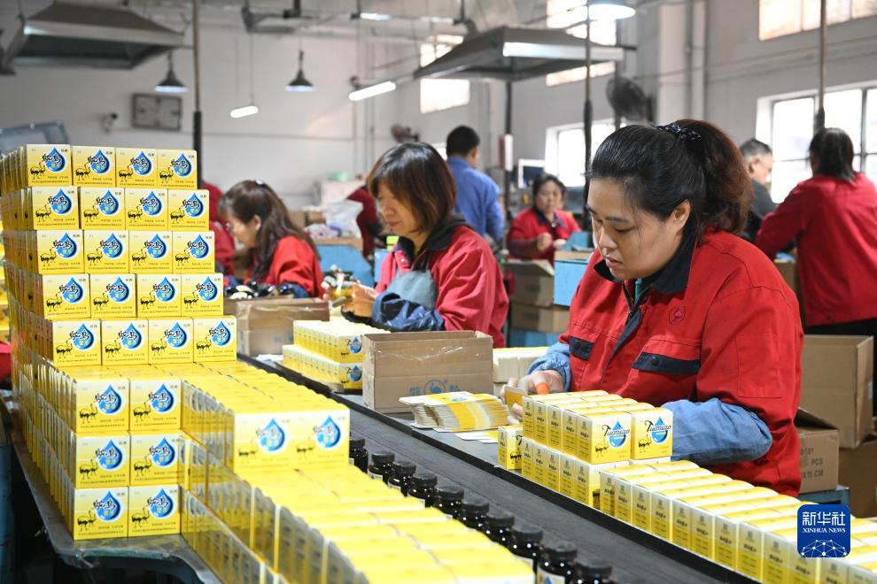 這是12月12日在天津市鴕鳥墨水有限公司生産車間拍攝的墨水生産現場。
