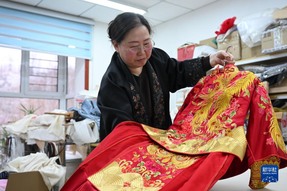 河北省非物質文化遺産項目“王氏宮繡”代表性傳承人王國榮潛心研究刺繡30餘年。近年來,王國榮在家鄉河北省隆化縣創立工作室,為高端定制服飾進行代加工,非遺技藝得到傳承的同時,還帶動當地40多名繡娘發展“指尖經濟”,工坊年收益達120余萬元。