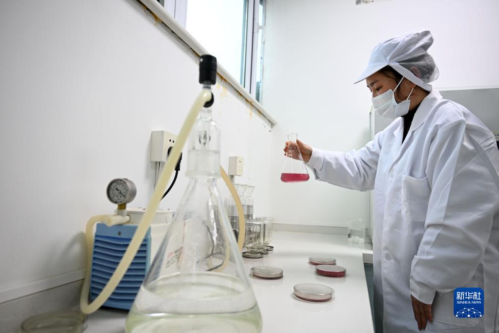 12月13日,隆化縣藍旗鎮一家礦泉水廠工作人員在檢測水質。
