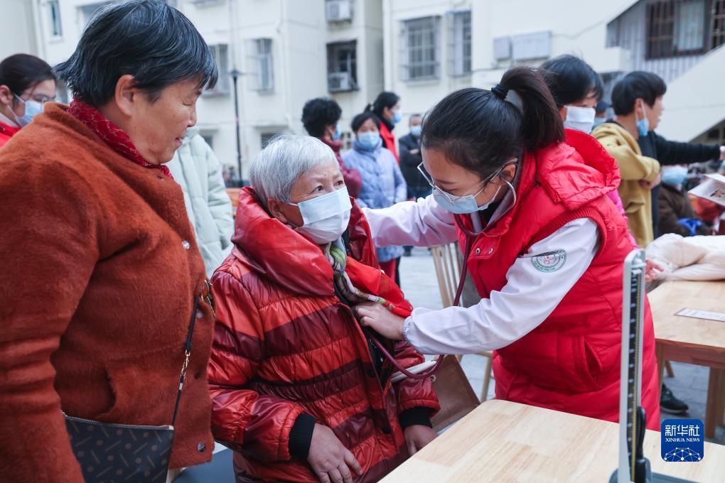12月13日,飛英月河衞生服務中心的醫務工作者在飛英街道吉北社區為居民義診。