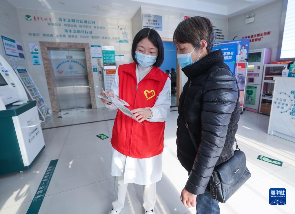 12月13日,飛英月河衞生服務中心的醫務工作者給前來就診的居民進行冬季呼吸道疾病防治知識普及。