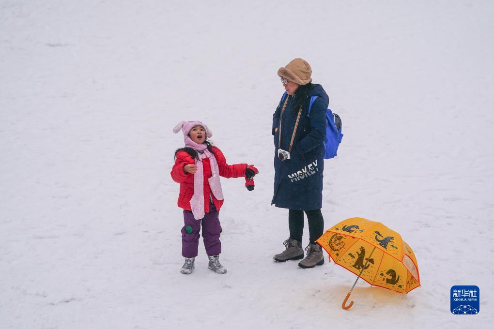12月13日,小朋友和家長在故宮的雪地上玩耍。