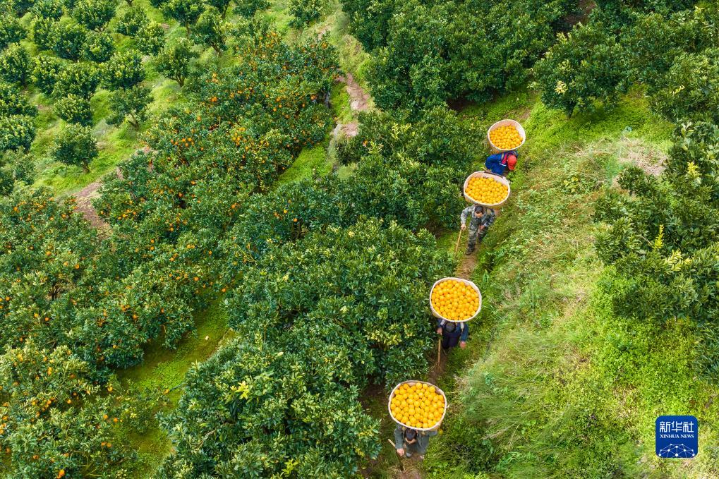 三峽庫區湖北省宜昌市秭歸縣的冬季臍橙進入收穫季,當地果農抓緊採摘、轉運、包裝,供應市場,助農增收。