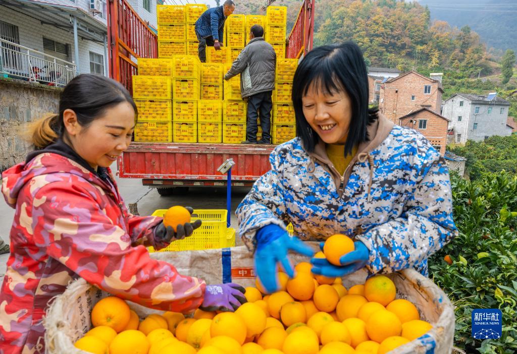 三峽庫區湖北省宜昌市秭歸縣的冬季臍橙進入收穫季,當地果農抓緊採摘、轉運、包裝,供應市場,助農增收。