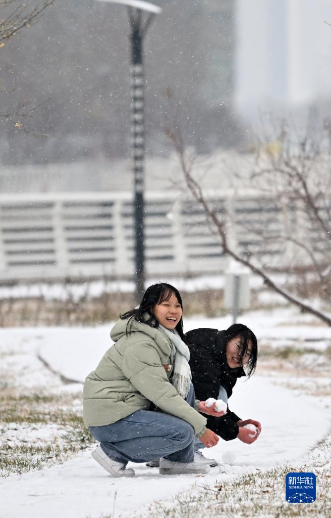 12月13日,學生在天津中醫藥大學團雪球。