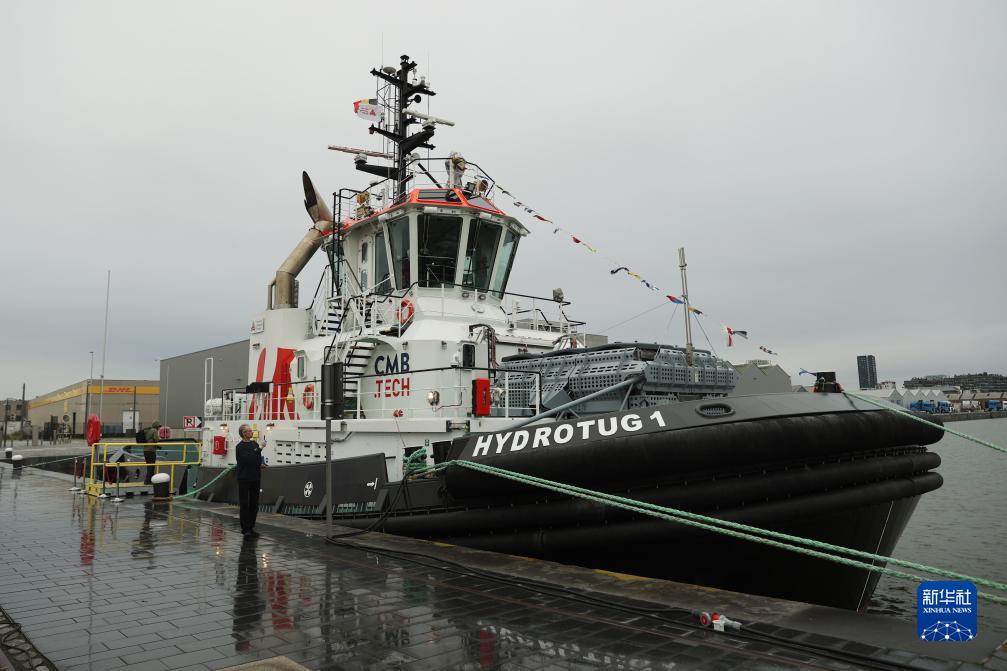這是12月12日在比利時安特衛普-布魯日港拍攝的氫動力拖船。新華社記者 趙丁喆 攝