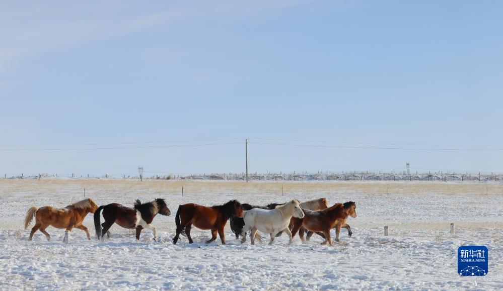降雪過後,內蒙古錫林郭勒大草原銀裝素裹,成群的牲畜在白雪皚皚的草原上覓食,冬日美景讓人如癡如醉。