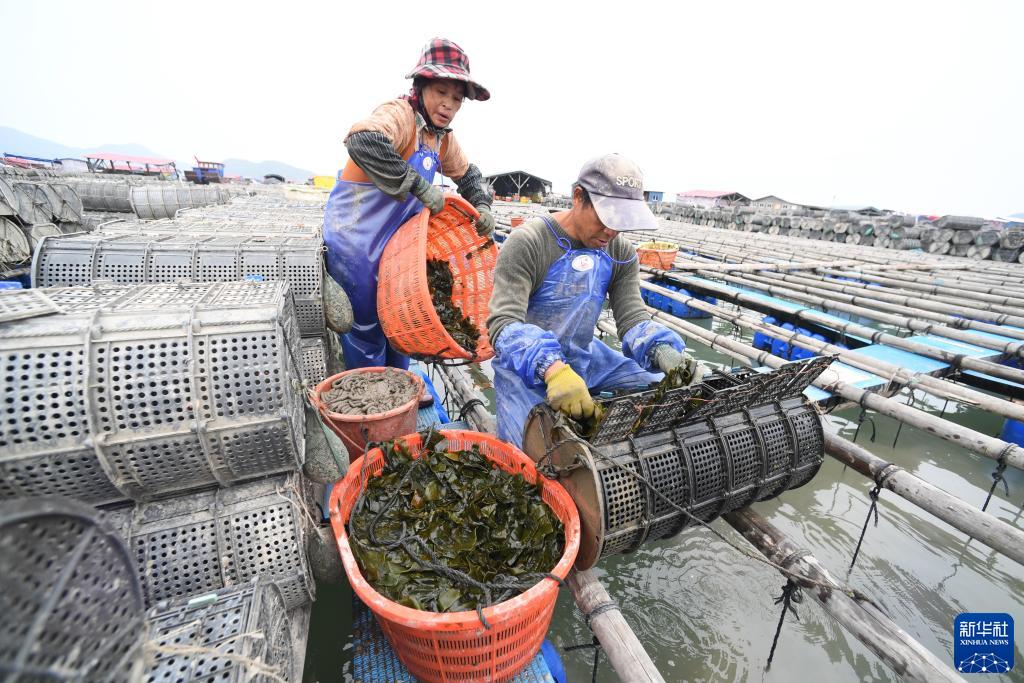 時下正值養殖海參南遷過冬時節,在“北參南養”主産區福建省霞浦縣,養殖戶從北方大連、青島等地購買引進的9000余車成長了一年多的海參苗被重新分籠,投放到海參養殖漁排內繼續生長,等待第二年清明前後收穫上市。