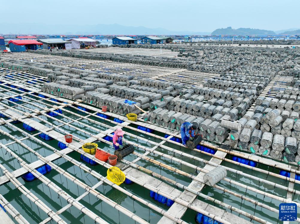 時下正值養殖海參南遷過冬時節,在“北參南養”主産區福建省霞浦縣,養殖戶從北方大連、青島等地購買引進的9000余車成長了一年多的海參苗被重新分籠,投放到海參養殖漁排內繼續生長,等待第二年清明前後收穫上市。
