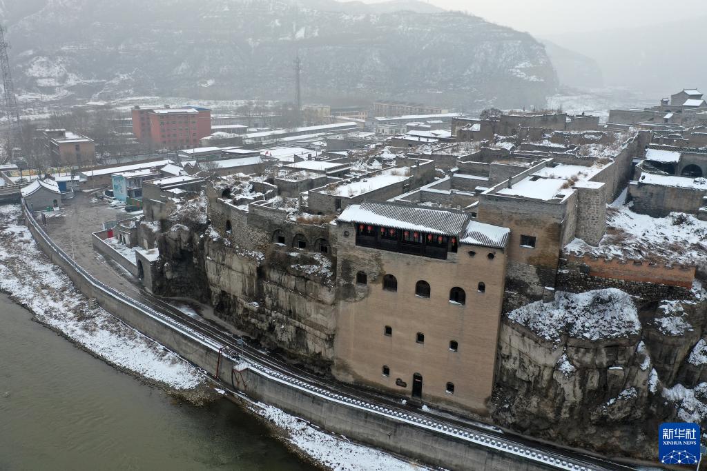 山西省靈石縣夏門古堡(無人機照片,12月12日攝)。