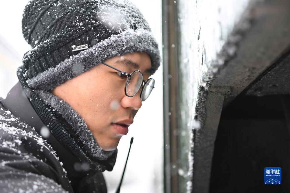 當日,山西省太原市迎來降雪天氣,中國鐵路太原局集團有限公司太原車輛段對入庫列車加強日常檢修力度,確保旅客列車運行安全。