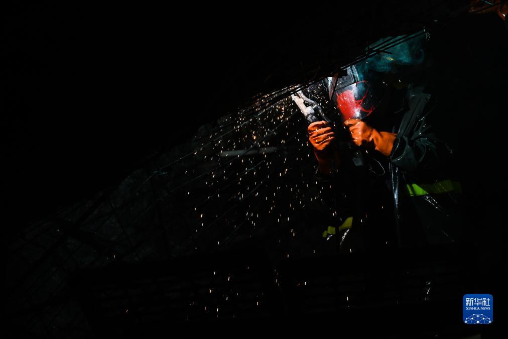 12月14日,中鐵十八局集團有限公司工人在昂思多隧道內施工。