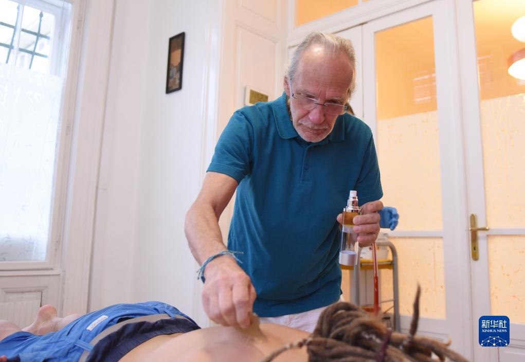 12月12日,在奧地利維也納,科格勒醫生為病人進行刮痧治療。