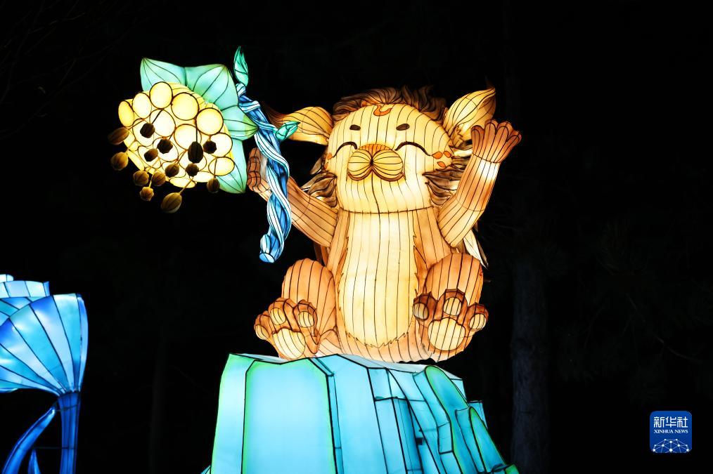 這是12月14日在法國巴黎風情園舉辦的“山海有靈”法國豫園燈會上拍攝的花燈。