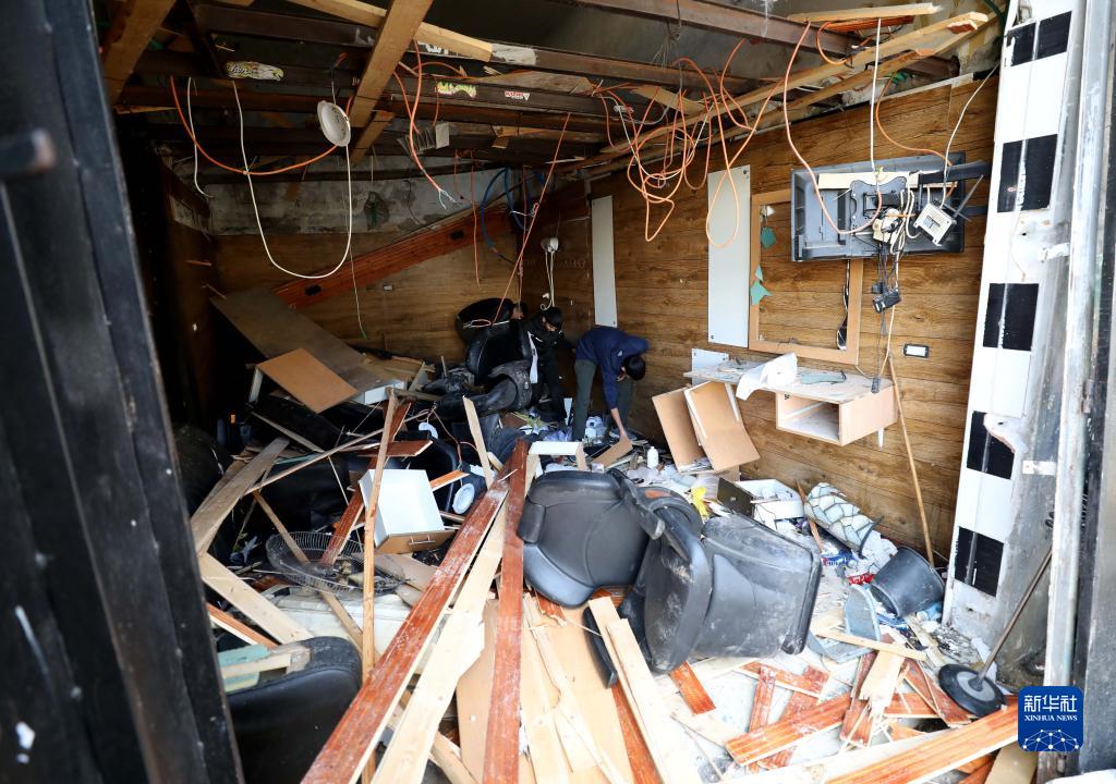 12月14日,在約旦河西岸城市傑寧,人們查看損毀的房屋。