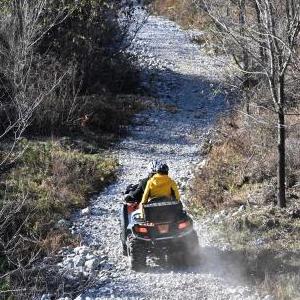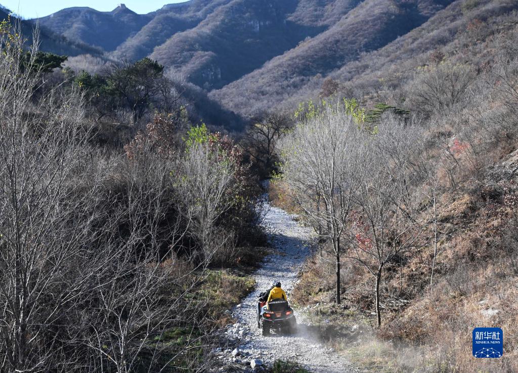 李哲駕駛越野車和學生一起在野外作業(11月3日攝)。