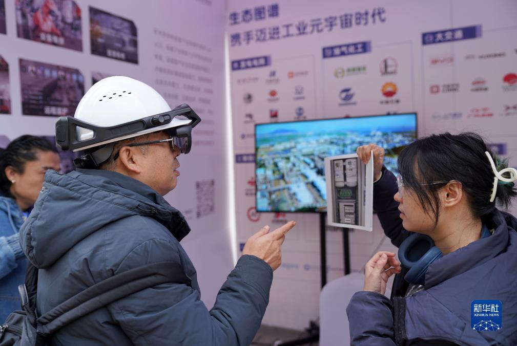 12月15日,與會嘉賓在參會企業展&前體驗一款5G工業AR智能眼鏡。
