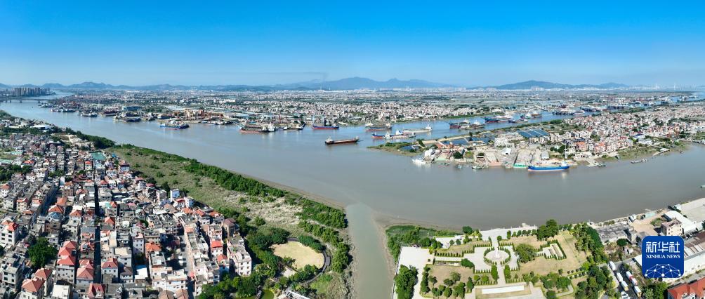 漳州月港一帶景觀(11月20日攝,無人機全景照片)。漳州是“海上絲綢之路”的重要始發港之一,明代中後期,漳州月港是當時中國唯一合法的民間海上貿易港口,由漳州月港始發的“海上絲綢之路”通商達到近50個國家和地區,成為東南地區海外交通貿易的中心。