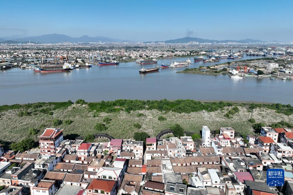 漳州月港一帶景觀(11月20日攝,無人機照片)。漳州是“海上絲綢之路”的重要始發港之一,明代中後期,漳州月港是當時中國唯一合法的民間海上貿易港口,由漳州月港始發的“海上絲綢之路”通商達到近50個國家和地區,成為東南地區海外交通貿易的中心。