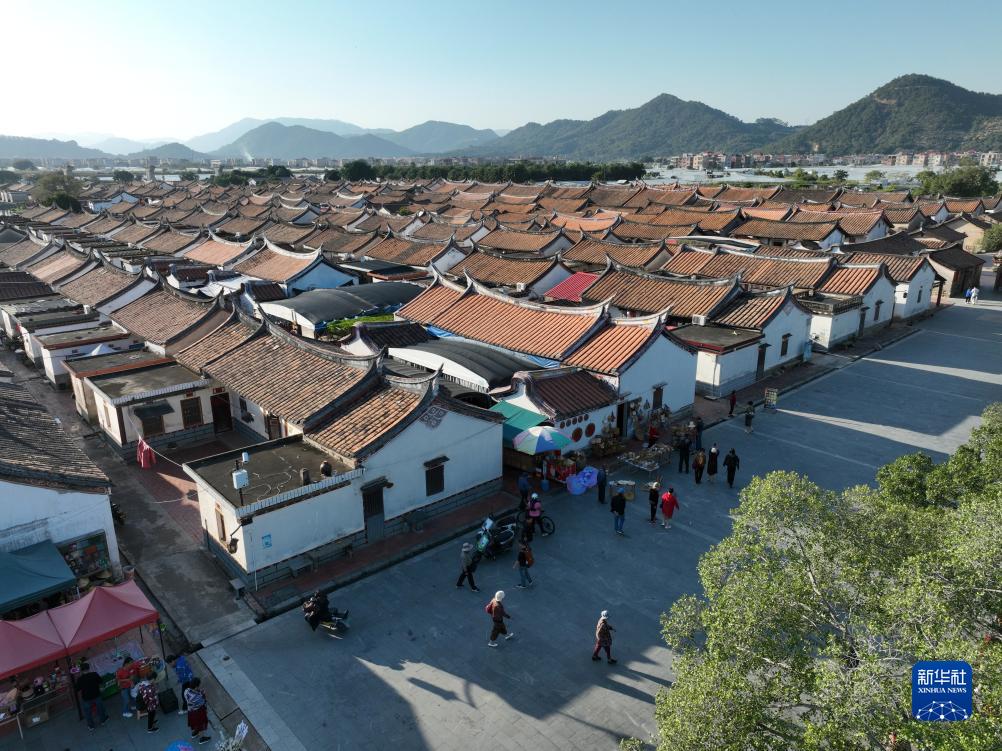 這是11月20日拍攝的埭美村(無人機照片)。埭美村位於福建省漳州市龍海區東園鎮九龍江南溪下游,全村四面環水、村內古厝成群,是閩係紅磚建築文化的傑出代表。明末清初埭美村村民通過發達的內河將大米、草席等農副産品運送到九龍江南溪碼頭,再通過大船運送到廈門、台灣乃至南洋等地,形成以月港為中心的海上絲綢之路貿易網絡。近年來,當地政府持續加大對埭美村古建築群的修繕與保護,發展鄉村旅游,讓這座閩南古村重新煥發生機與活力。