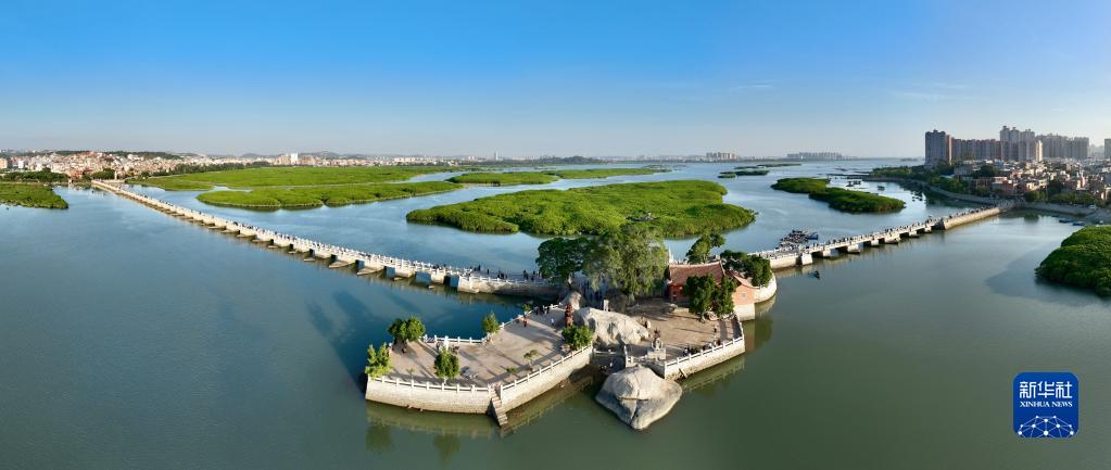 泉州洛陽橋(無人機全景照片,11月19日攝)。洛陽橋位於泉州市區東北部的洛陽江上,原名“萬安橋”,始建於北宋皇祐五年至嘉祐四年(1053-1059年),為我國現存最早的跨海梁式大石橋,代表當時中國先進的造橋技術。