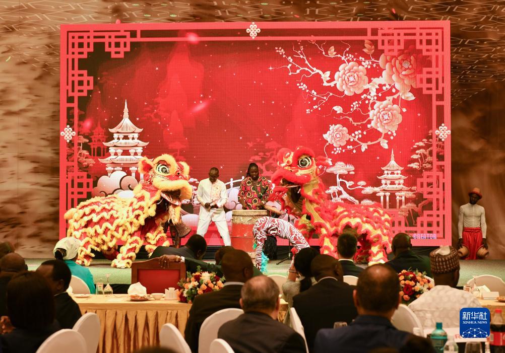 12月14日,演員在肯尼亞內羅畢舉行的招待會上表演舞獅。