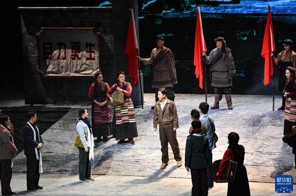 當日,話劇《老西藏》在西藏大劇院首演。該劇是西藏自治區文化廳打造的重點原創劇目,聚焦不同時期文化、水利、交通、教育、衞生等各條戰線上的西藏建設者,講述他們奉獻青春年華的熱血故事。