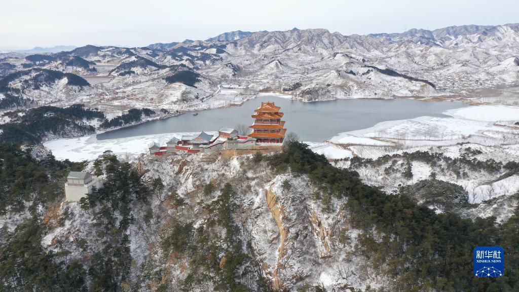 12月15日在河北省唐山市遷西縣玄武山拍攝的雪後景色(無人機照片)。