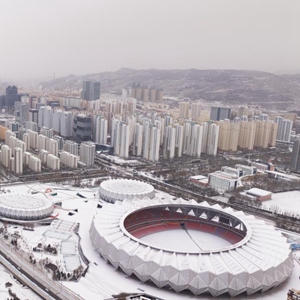 這是12月15日拍攝的雪後西寧(無人機照片)。