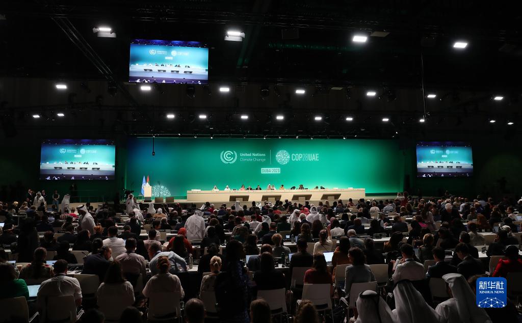 這是12月13日拍攝的聯合國氣候變化迪拜大會閉幕全體會議現場。