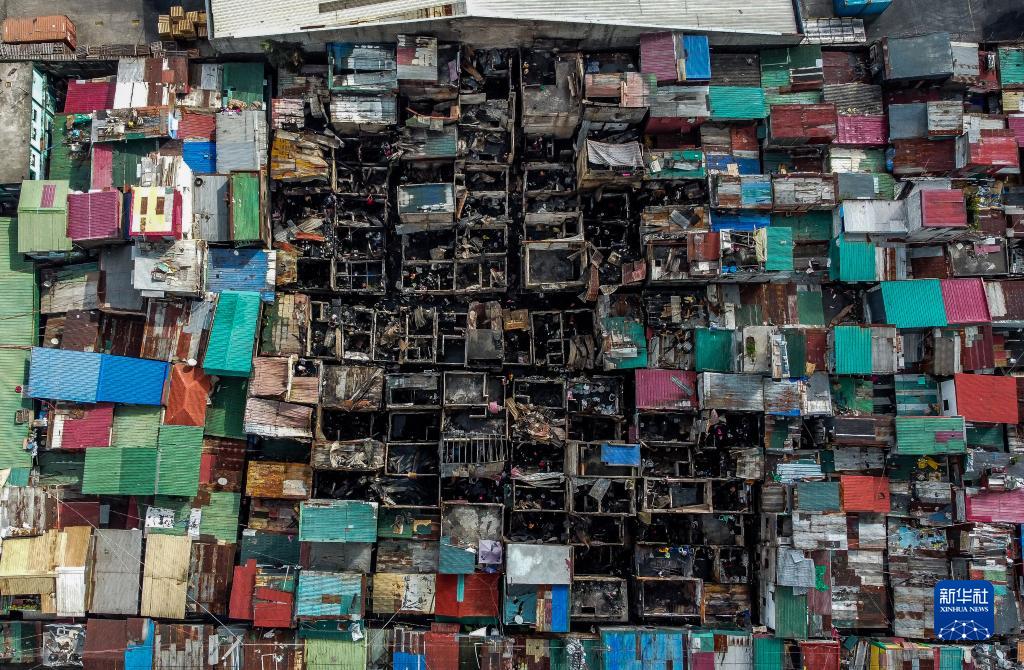 這是12月12日拍攝的火災過後的菲律賓馬尼拉一居民區(無人機照片)。