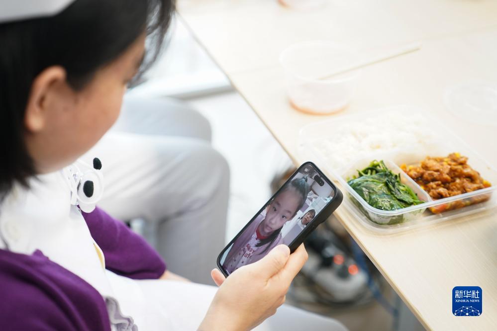 12月15日,同仁醫院兒科,主管護師範聰微在午飯時和女兒視頻。范聰微的女兒今年7歲,感染了支原體肺炎。范聰微工作脫不開身,孩子生病後只能在爺爺奶奶家養病。女兒發信息説想媽媽,范聰微只能趁中午吃飯的空檔和女兒視頻。