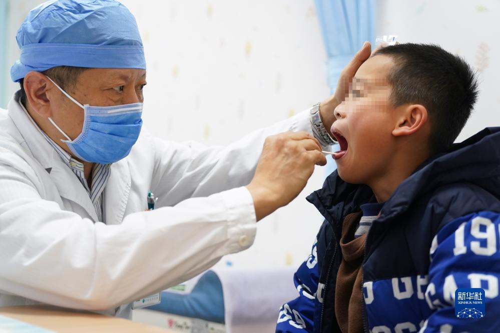 12月15日,同仁醫院兒科,主任醫師吳昱東在檢查孩子咽喉。