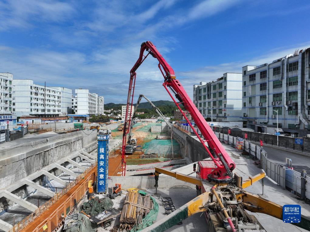 12月16日,施工人員在深圳地鐵3號線四期工程終點站坪地六聯站澆築最後一塊頂板。