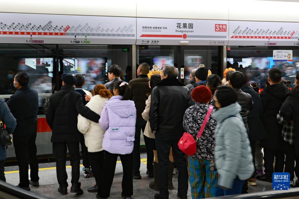 12月16日,市民在貴陽軌道交通3號線花果園站內準備乘車。