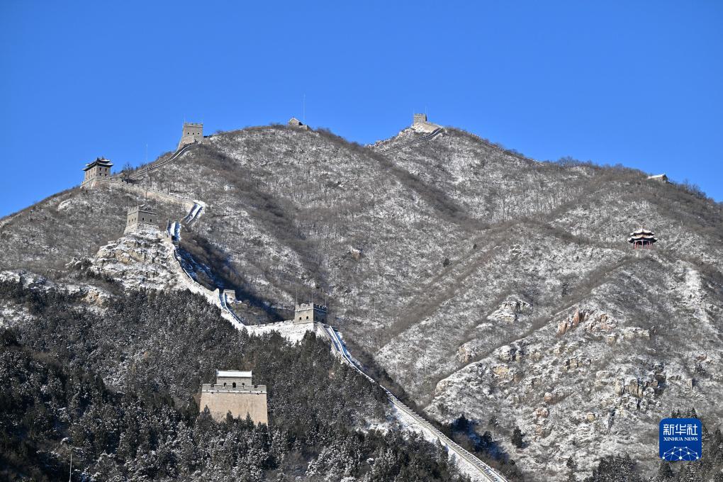 近日,北京迎來降雪,雪後天晴,居庸關長城內外銀裝素裹,猶如一幅水墨畫卷。
