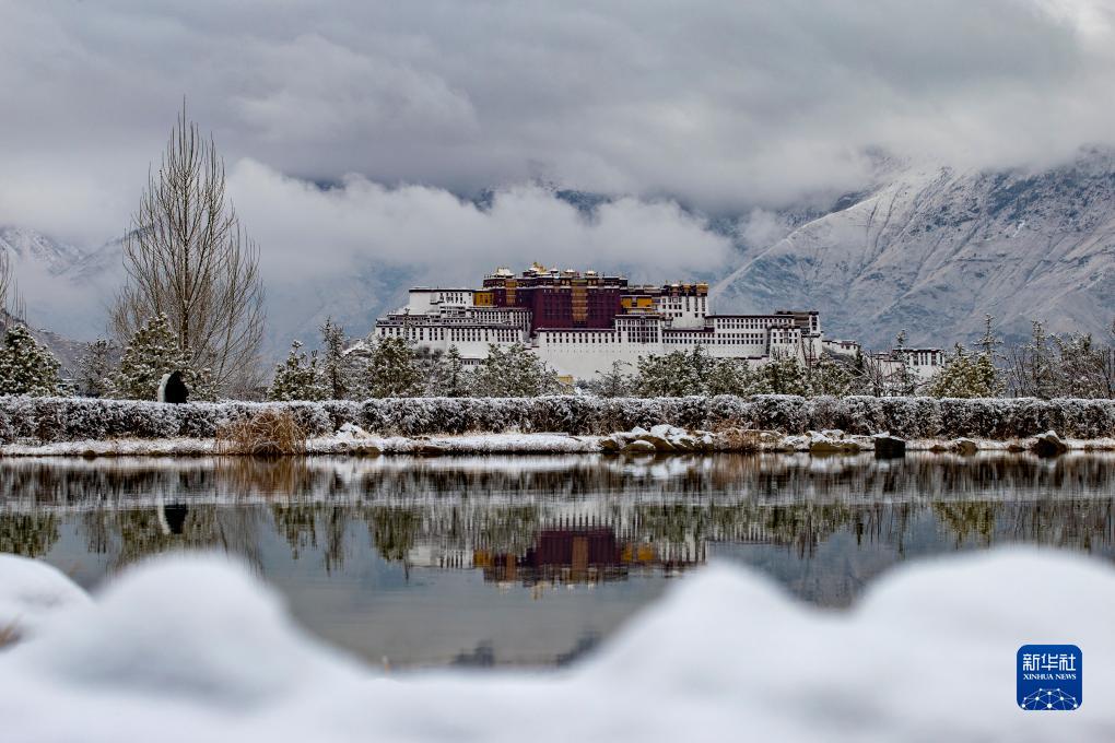 當日,西藏拉薩市迎來今年入冬以來的首場降雪,處處銀裝素裹,盡顯雪域高原之美。