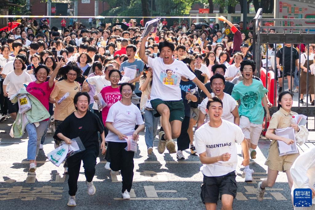 6月9日,在湖南省長沙市第一中學考點,考生在高考結束後慶祝。