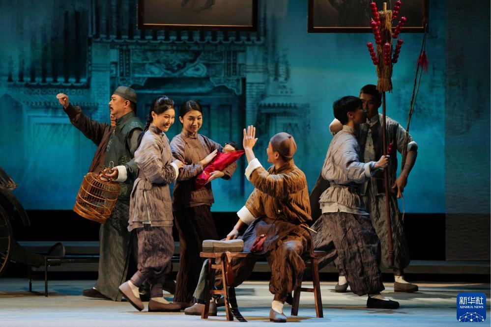 演員在北京長安大戲院表演新編京劇《齊白石》(12月16日攝)。