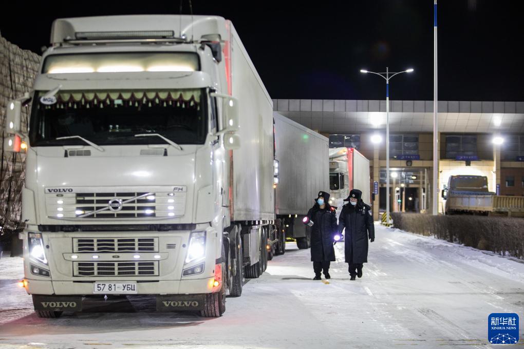 12月16日,內蒙古二連浩特公路口岸首次試行24小時貨運通關。內蒙古&&境邊防檢查總站二連&&境邊防檢查站全力做好車體檢查驗放工作,確保車輛通關高效順暢。
