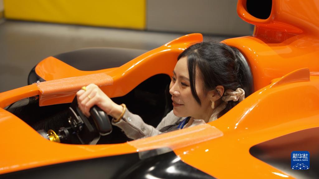 12月16日,參訪團成員熊素婉體驗三級方程式模擬駕駛器。