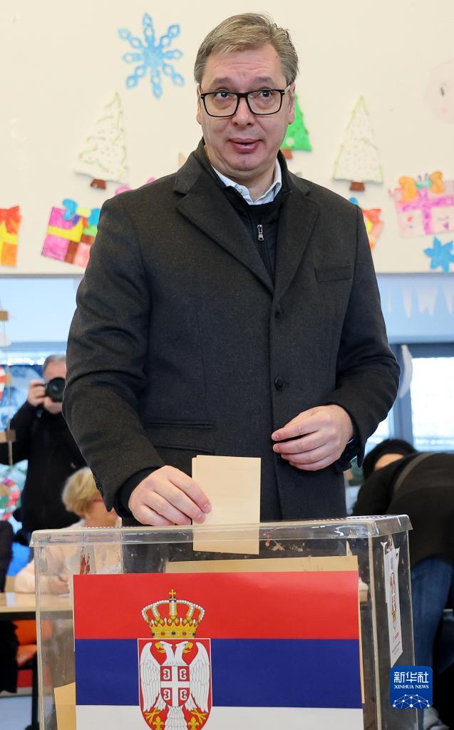 12月17日,塞爾維亞總統武契奇在首都貝爾格萊德一個投票站投票。