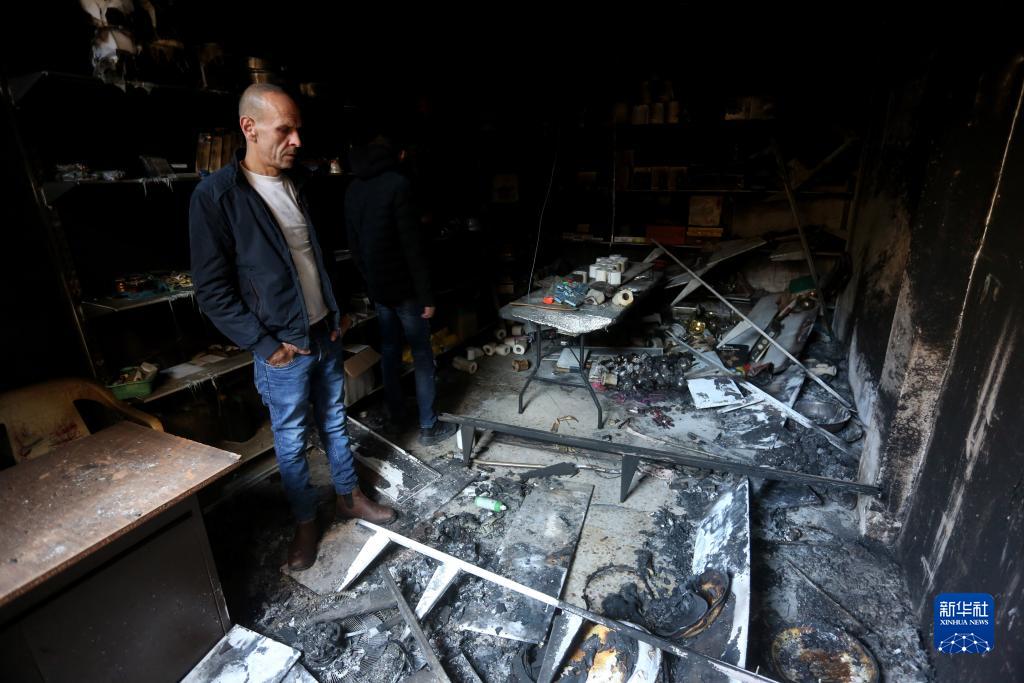12月17日,在約旦河西岸城市圖勒凱爾姆附近的一處難民營,一名男子查看在衝突中損毀的房屋。