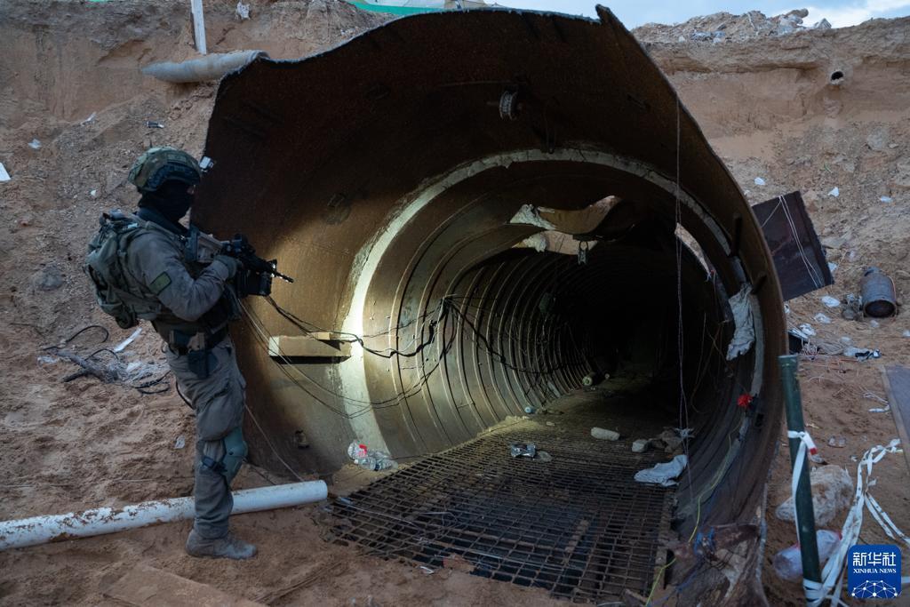這張以色列國防軍12月17日發布的照片顯示,以軍地面部隊在加沙地帶發現一處大型地下隧道。