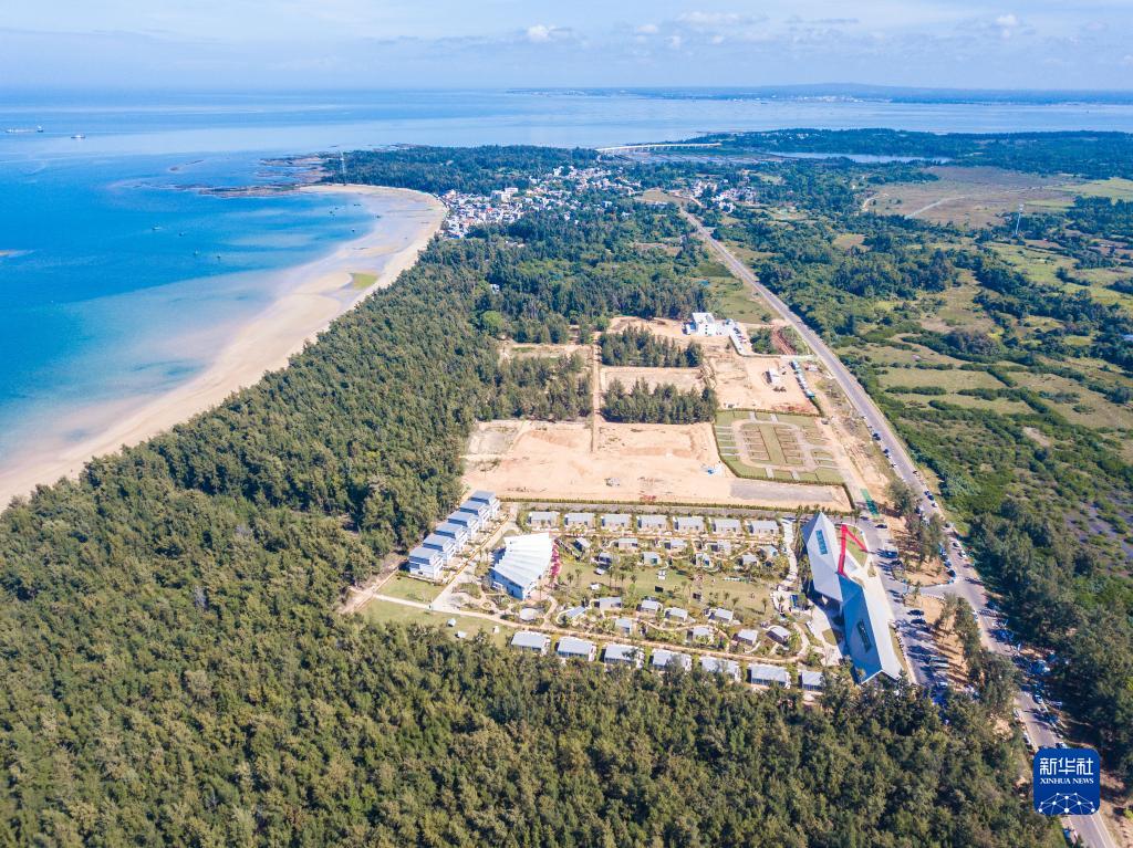 在海南省儋州市拍攝的海南環島旅游公路和“儋耳追光”驛站(無人機照片,12月15日攝)。