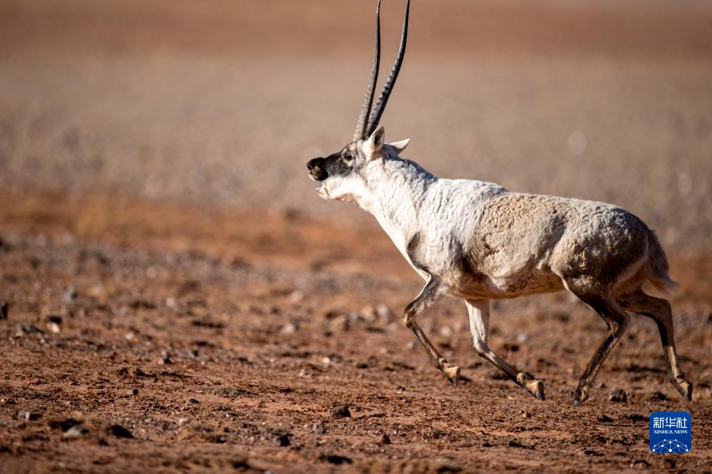 在羌塘國家級自然保護區,一隻雄性藏羚羊在奔跑(12月17日攝)。
