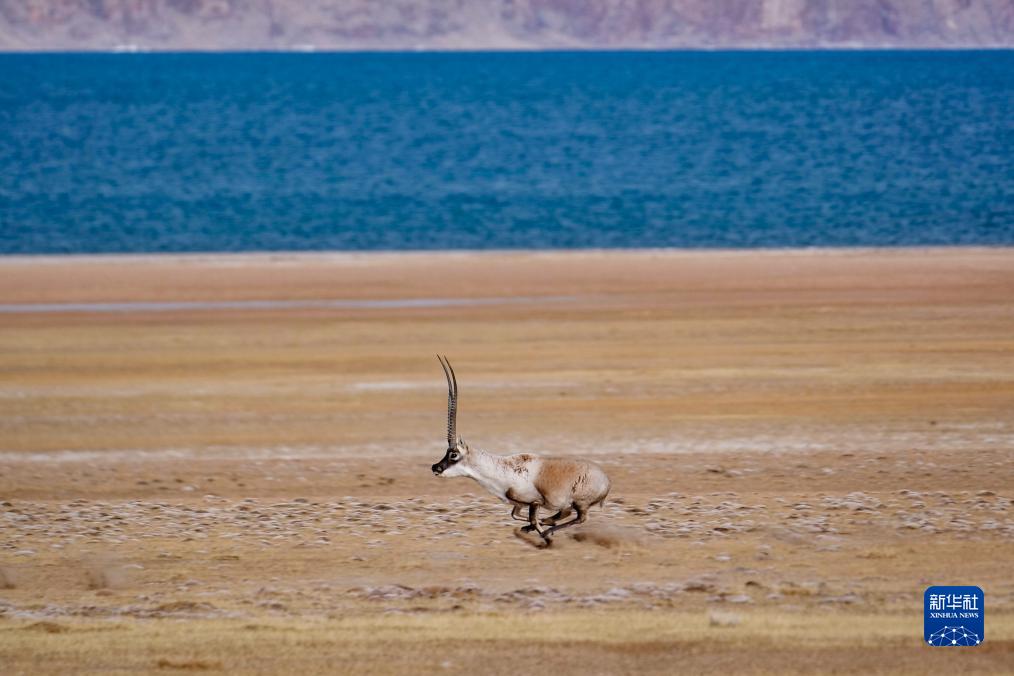 在羌塘國家級自然保護區,一隻雄性藏羚羊在奔跑(12月16日攝)。